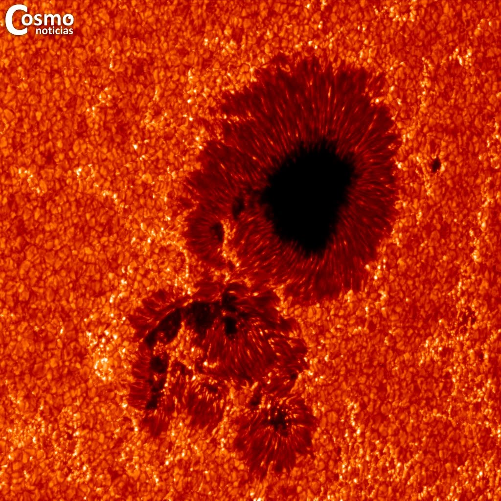 | Imágenes de luz blanca de la superficie solar observadas por el Telescopio Óptico Solar Hinode a las 22:07 UT, antes de la llamarada del 14 de diciembre de 2006. |